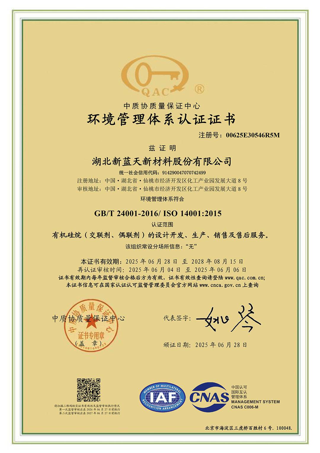 ·当前位置:湖北新蓝天新材料股份有限公司 → 社会责任 → 管理体系