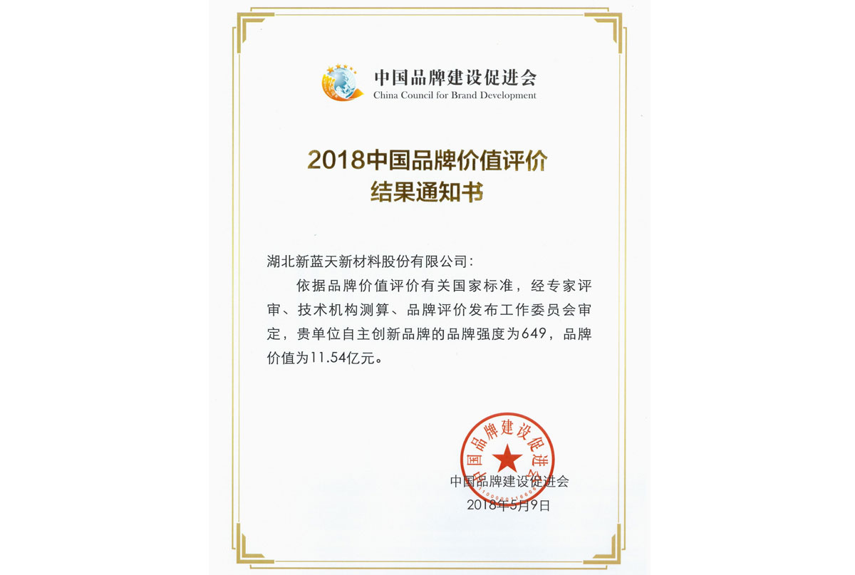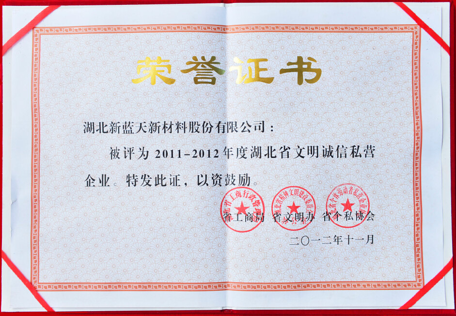 ·当前位置:湖北新蓝天新材料股份有限公司 → 关于新蓝天 → 资质荣誉 → 荣誉展示
